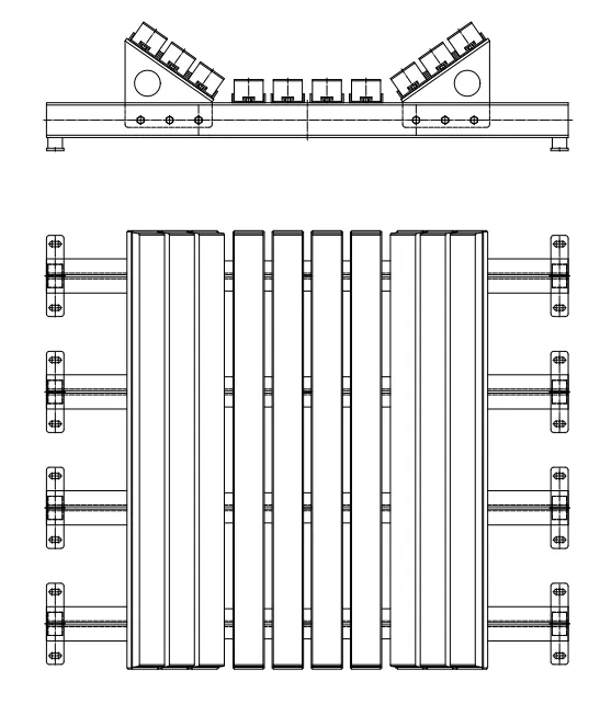 The impact bed can be customized according to customers' idler support frame designs to ensure the trough angle matches perfectly with the idler frame's trough angle. The smooth transition at the trough angle provides full-area support for the conveyor belt. The impact bed frame adopts a "back-to-back" dual-channel steel structure with excellent impact resistance strength.
